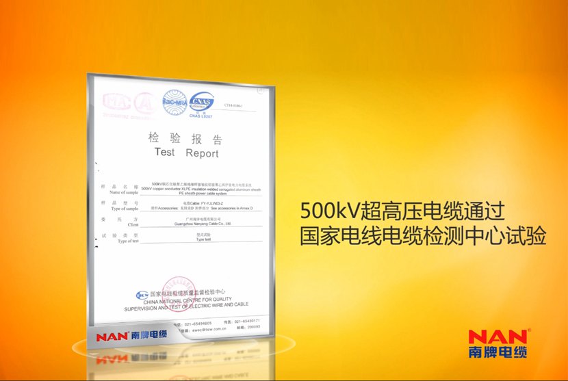公司是ISO質量處理系統、環境處理系統,作業健康安全處理系統、計量確保系統認證企業,具有廣東省電纜作業僅有的工程技術研討開發中心,南洋電纜具有多項專利并多次參與國家規范及作業規范的擬定,不斷立異開發新產品。35kV及以下電纜產品獲得全國工業產品出產許可證,電線產品經過我國質量認證中心CCC認證,110kV電纜經過我國電力企業聯合會產品斷定,220kV電纜系統經過預斷定試驗;500kV電纜系統經過型式試驗和荷蘭凱馬(KEMA)認證,加添華南地區500kV電纜產品的空白,可代替進口產品,電纜制造技術抵達國際搶先水平。